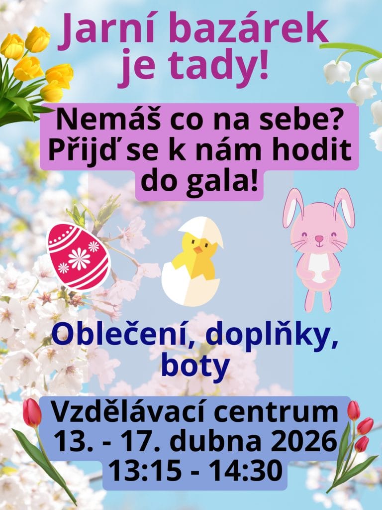 Zastavte se na našem jarním bazárku, kde na vás čeká oblečení, obuv i doplňky, které si zaslouží druhou šanci.